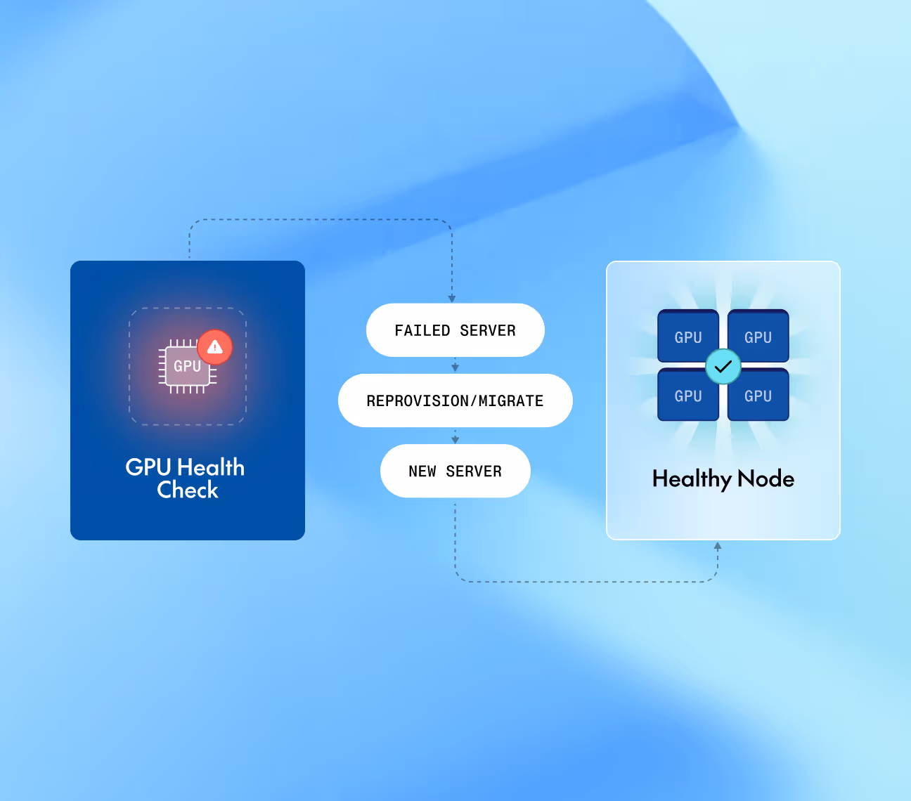 When hardware fails, automated remediation restores capacity — no support tickets, no manual intervention, keeping long-running jobs on track with predictable recovery behavior.