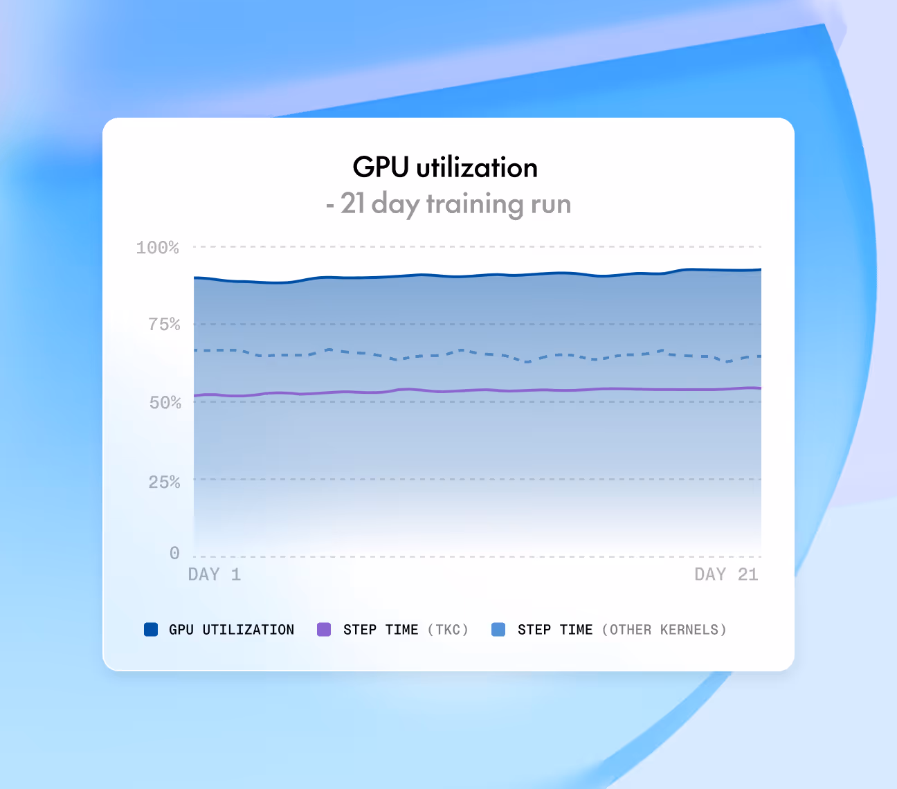 Maintain high utilization across multi-week training runs and model serving. Kernel, hardware, and storage acceleration reduce stragglers and keep latencies predictable.