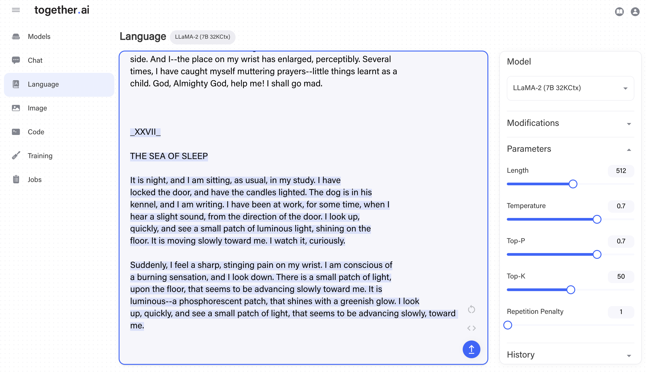- Go to Together API and run LLaMA-2-7B-32K for inference.