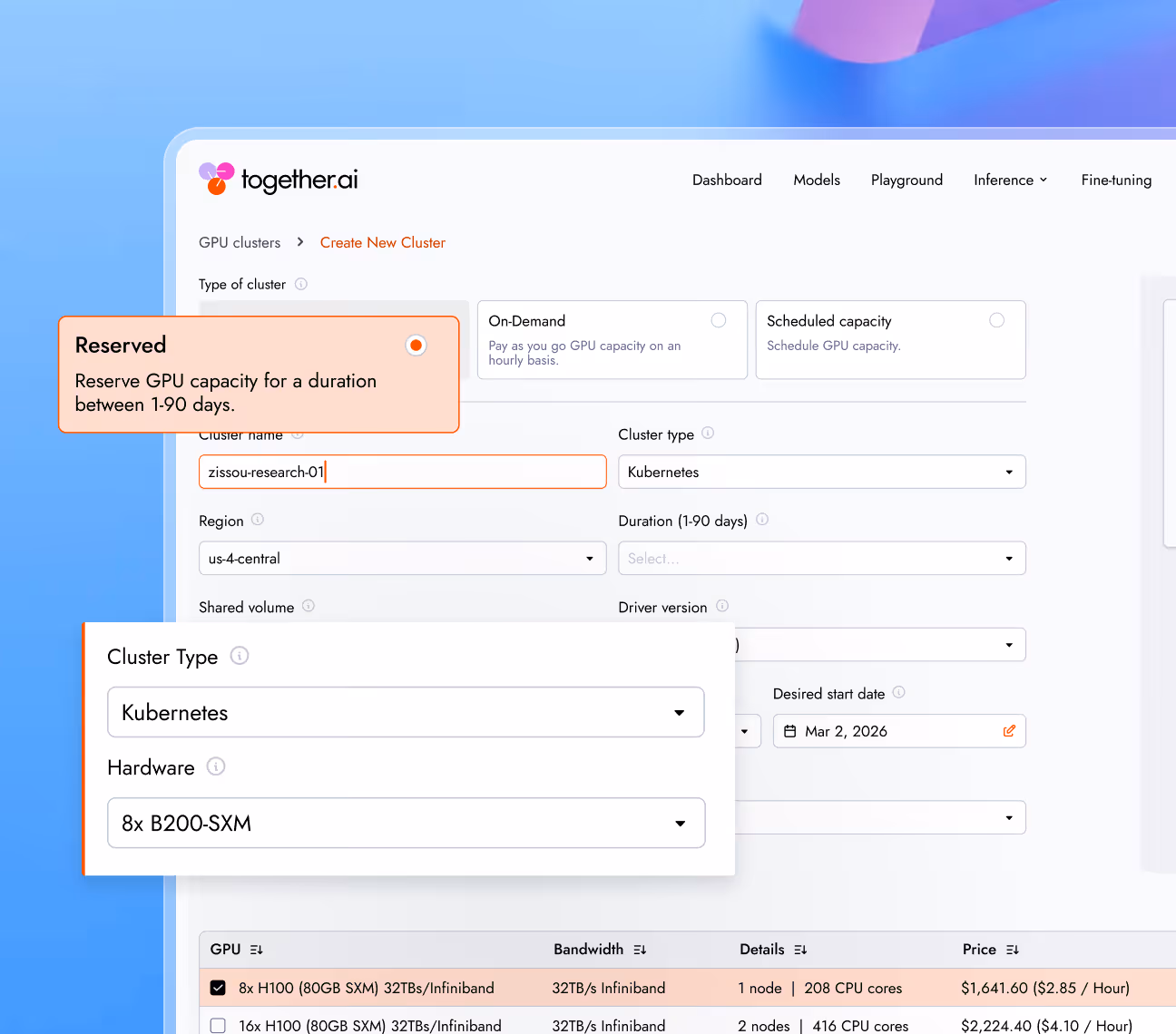 Deploy Kubernetes for open-source extensibility, or run Slurm for precise hardware control and gang scheduling. Both fully managed.