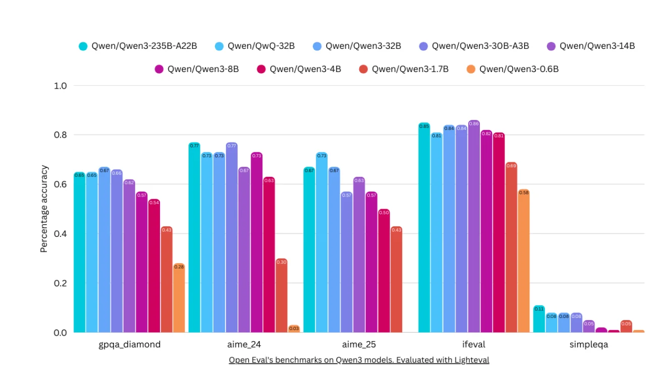 Perhaps most importantly, benchmarks also help us understand not just what models can do, but what they cannot do. They reveal blind spots, highlight areas needing improvement, and guide research priorities. This is crucial for building reliable AI systems and setting appropriate expectations for real-world deployment. A great example of this is seen in recently released models that actually show degraded performance on general knowledge benchmarks like SimpleQA from OpenAI. For example, Qwen3 235B outperformed many other models on most agentic and reasoning benchmarks — but when evaluated for general knowledge, it severely underperforms! This has since been rectified with the newer Instruct and Reasoning versions of Qwen3, performing significantly better on SimpleQA.
