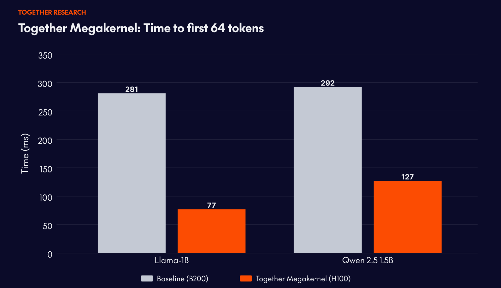 The result: 77ms on Llama-3.2-1B, a 3.6x performance improvement and 7.2x better unit economics compared to their prior deployment. On Qwen 2.5 1.5B: 127ms, down from 292ms on the B200 baseline.