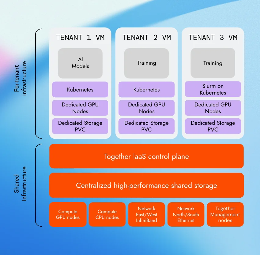 Together AI’s multi-tenant clusters are a concrete implementation of this pattern, demonstrating what bare-metal performance with cloud-like flexibility looks like for AI-native teams in practices, billed directly per tenant based on actual usage.