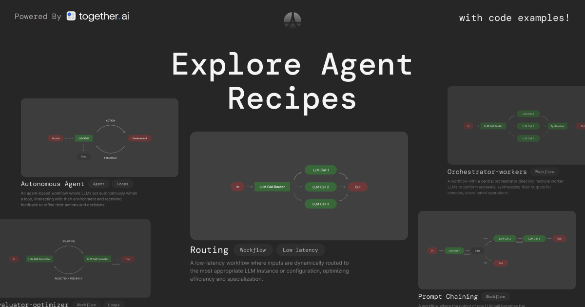 Explore common agent recipes with ready to copy code to improve your LLM applications.